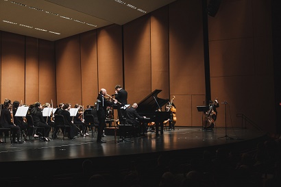 In addition to the premiere of the piano quintet, Portland-based Cappella Romana performed traditional byzantine chant upon which the piano quintet is based. The evening concluded with a performance of Philip Glass's monumental Piano Concerto No.2 "After Lewis and Clark" with Barnes, Native American flutist Ron Warren, and the UNL Symphony Orchestra under the direction of Tyler White.